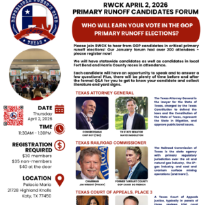 Republican Women’s Club of Katy – Texas Statewide Primary Runoff Candidate Forum!