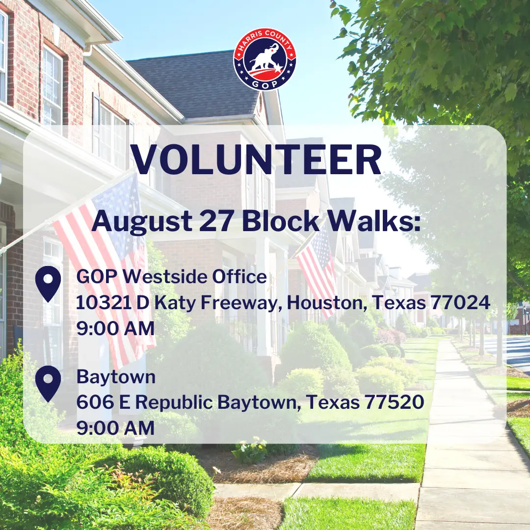Join us this weekend as we knock on doors in Harris County Precincts 2 and 4 to talk to voters about Republican candidates Alexandra del Moral Mealer, Jack Cagle, Jack Morman, and our Republican judicial candidates!