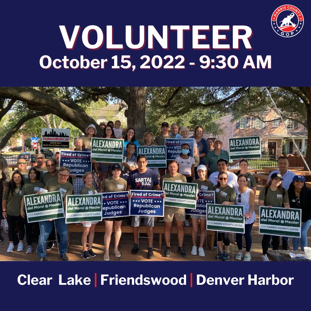 Sign up to volunteer with the Harris County GOP and block walk for our judicial candidates so we can make Harris County neighborhoods safe again.