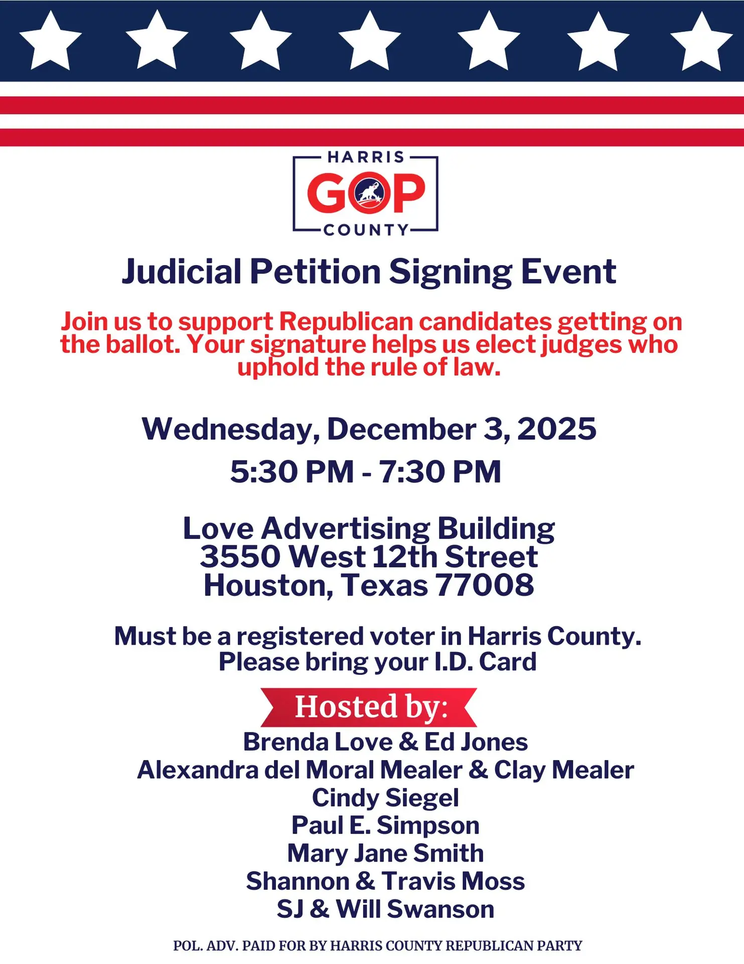 Harris County Republican Party | 8588 Katy Freeway, Suite 445 Houston, TX 77024 | (713) 838-7900