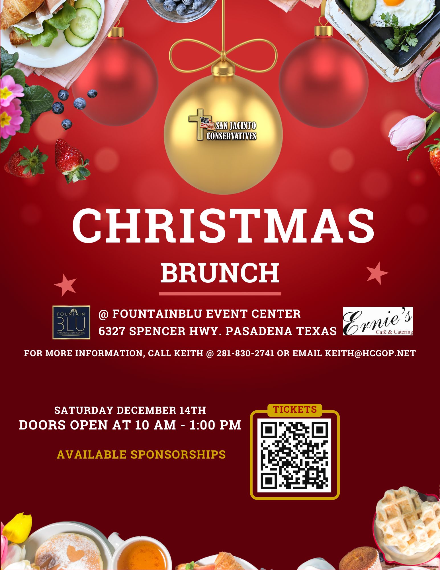 San Jacinto Conservatives Christmas Brunch with Texas GOP Chairman Abraham George + Add to Google Calendar + iCal / Outlook export Date Jan 14 2025 Expired! Time 10:00 am - 1:00 pm More Info RSVP Share this event