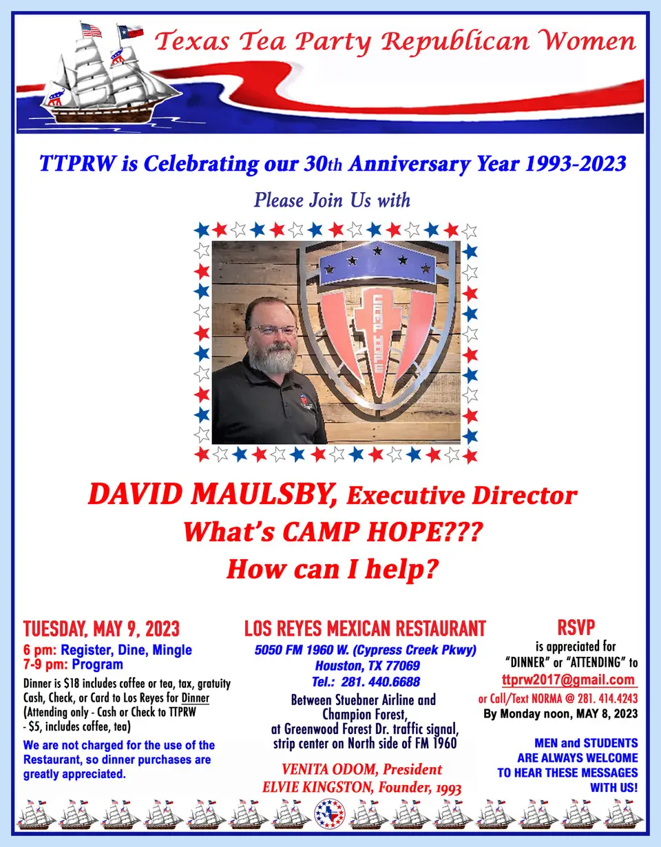 Come join the Texas Tea Party Republican Women as they host David Maulsby!