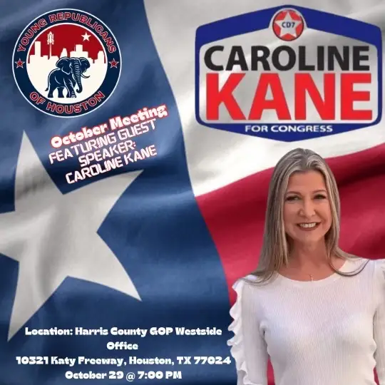 Join the Republican Party of Texas (RPT) and State Republican Executive Committee (SREC)-backed Youth Auxiliary for Houston as we host Congressional District 7 Candidate Caroline Kane.