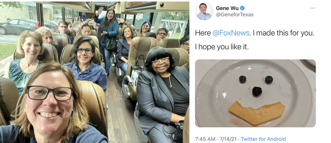All week they have treated the citizens of Harris County to their juvenile behavior with pictures on a party bus with beer and the funny faces they made out of their food posted on social media – instead of doing the job they were elected to do… Deliberate and vote on legislation.