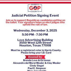 Harris County Republican Party only posts events that are sponsored by HCRP, Republican candidates, and Republican organizations and clubs.