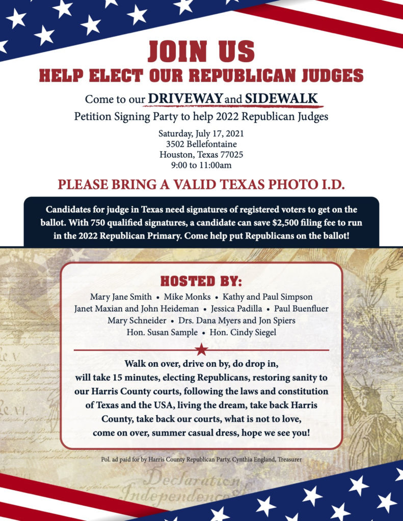 We are in a fight – a fight for Harris County, a fight for our country and a fight for our freedoms! This is a fight that we cannot win without your help!